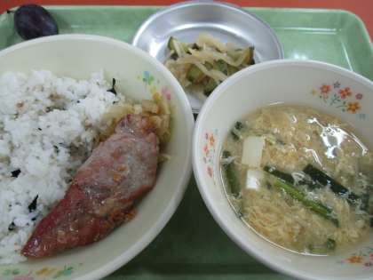 10月11日の給食 公開日 2021/10/15 更新日 2021/10/15 給食室より 11のこんだては、 ・磯ごはん ・豚肉の生姜焼き ・にらたまみそ汁 ・ピリ辛野菜 ・くだもの(プルーン) ・牛乳 です。 今日は、「八王子で活躍中のスポーツ選手に学ぶ!運動と食事について」ということで、社会人野球チーム「セガサミー野球部」の皆さんからメッセージをいただいています。 小学生時代は体づくりに大事な時期。しっかり食べて、心も体も大きく成長しよう! いいね(0)