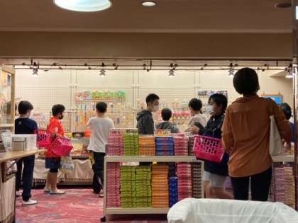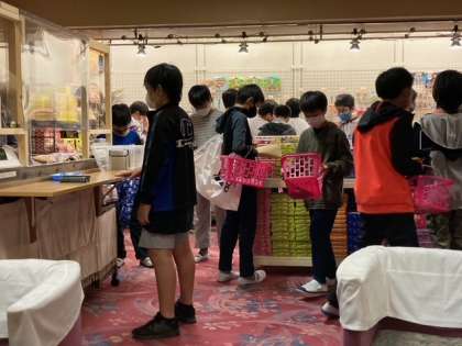 お風呂が終わり、買い物です。妹におみやげを買うという子もいました。