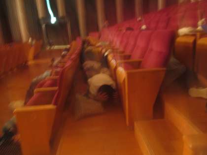 3・4年生がお世話になりました。コンサートの終盤に地震が起こり、、その後、火災も発生という想定で避難訓練をしました。
