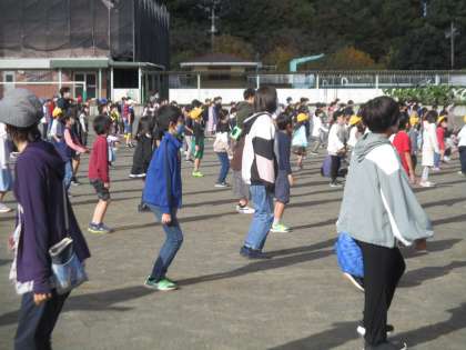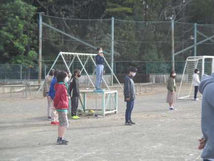 校庭で行いました。集会委員の指示と逆の動きをするというゲームでした。みんなで楽しみました。