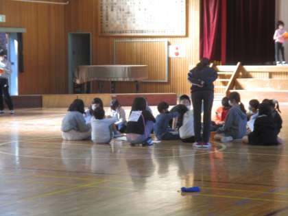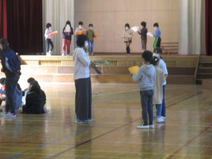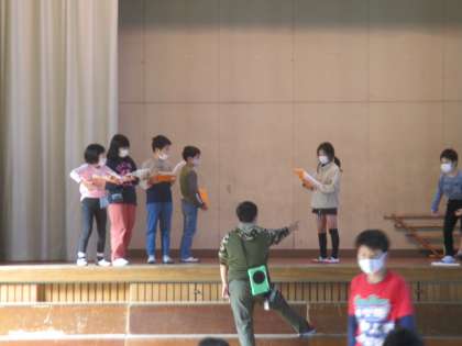 学習発表会の練習をしていました。グループに分かれてそれぞれが頑張っていました。
