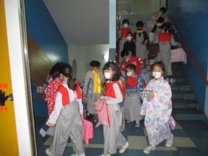 1時間目の学習発表会の練習のために体育館に向かいます。