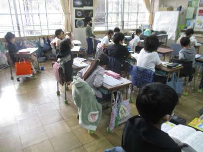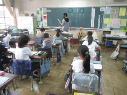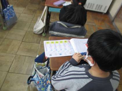 国語です。漢字の学習です。音読みと訓読みを覚えます。