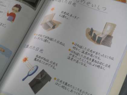 理科です。はね返した日光を重ねるという太陽の光の学習でした。