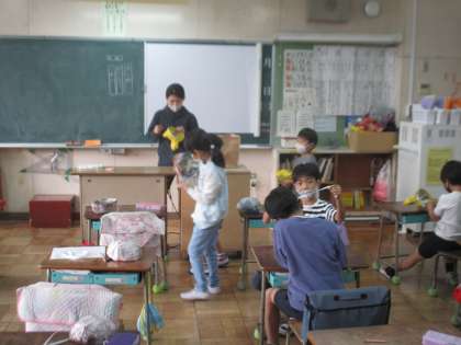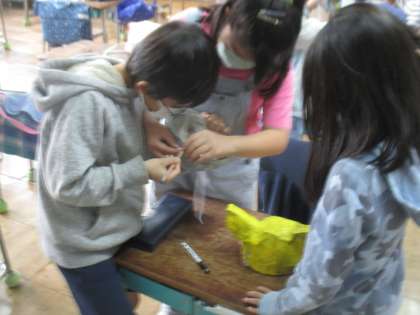生活科です。劇の小道具づくりを頑張りました。