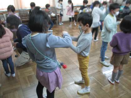 生活科の授業でした。昔の遊びということで、けん玉に挑戦です。