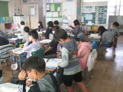国語です。「うみがめの命をつなぐ」という単元の学習をしていました。