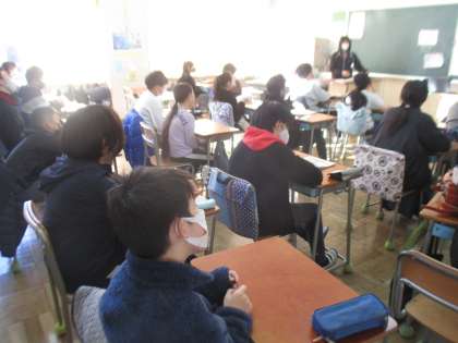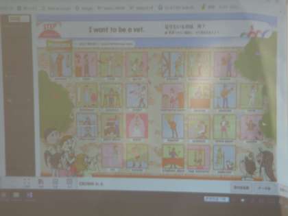 英語です。プロジェクターで映した画面を見ながらの活動でした。