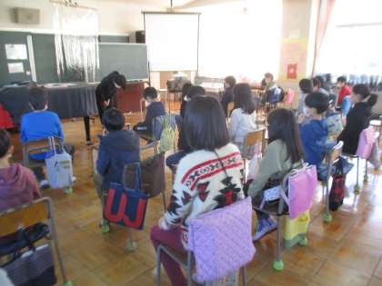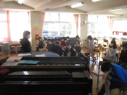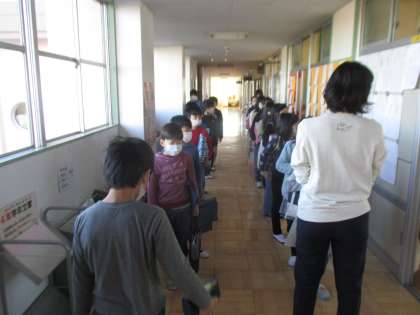 音楽です。教室前の廊下で並び音楽室へと向かいます。