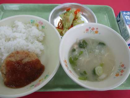 1月13日の給食 公開日 2022/01/14 更新日 2022/01/14 給食室より 13日のこんだては、 ・ごはん ・豆腐ハンバーグおろしソース ・かぶのみそ汁 ・キャベツの生姜風味 ・牛乳 です。 「かぶ」は、春の七草のひとつで、別名は「すずな」といいます。今から約1300年前の奈良時代には食べられていた記録が残っている古い野菜です。生でも加熱してもおいしく食べられます。今日は、葉っぱも一緒にみそ汁にしました。残さず食べてくれると嬉しいです。 いいね(0)
