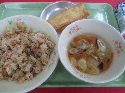 1月19日の給食 公開日 2022/01/19 更新日 2022/01/19 給食室より 19日のこんだては、 ・チャーハン ・ツナポテトぎょうざ ・柏木小産白菜のスープ ・牛乳 です。 今日は、地域の方が育てた「白菜」をスープでいただきます。白菜には、「カゼの予防」や「お通じをよくする」、「美肌」などに効果のある栄養が含まれています。育ててくれた地域の方に感謝をして、おいしくいただきましょう! いいね(0)