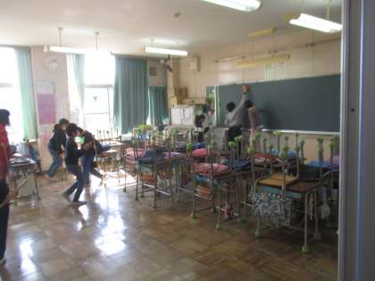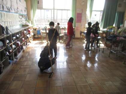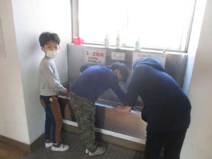冷たい水ですが、きれいにしてくれています。教室では、黒板もピカピカにします。