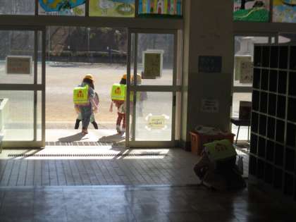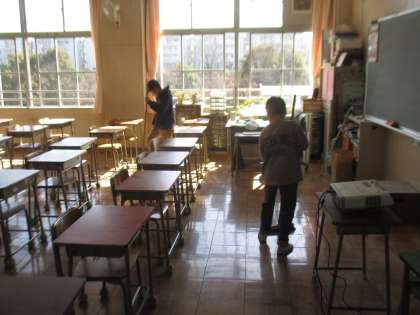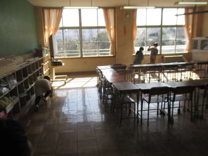 中・高学年が掃除をしている時、就学時説明会があるため、1年生は下校していました。