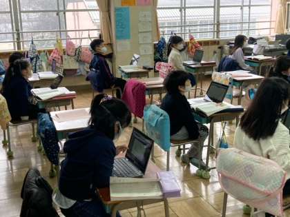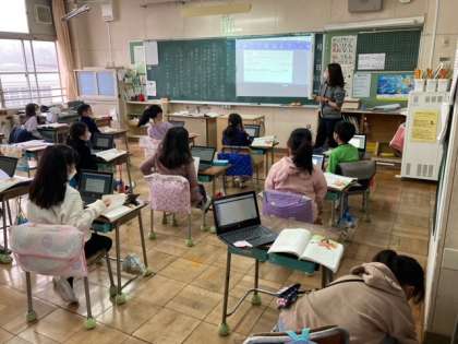 お隣のクラスも国語です。タブレットを活用しながら、授業か進みます。