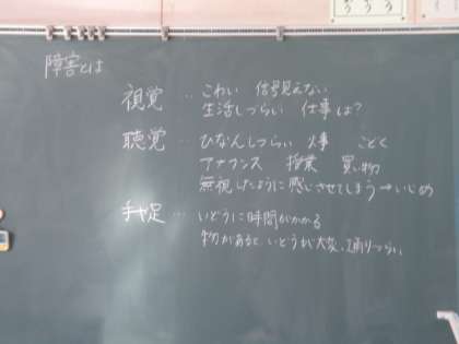 八王子市から配布された冊子を使って、いろいろな障害についての学習をしました。