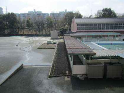 晴れ間が見え、校庭や体育館の屋根の雪は完全にとけました。