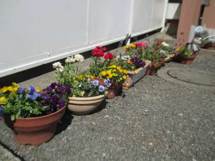 先週飼育栽培委員会で作った寄せ植えですが、だいぶ落ち着いてきて新しいつぼみが膨らんできました。