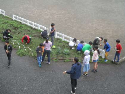 畑に苗を植えていました。 同時に草むしりも頑張っていました。