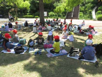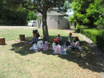 普段の給食もおいしいですが、外で食べるお弁当も格別ですね。 大きな滑り台は大人気でした。