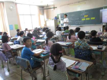 教育実習生の先生が算数の授業をしていました。