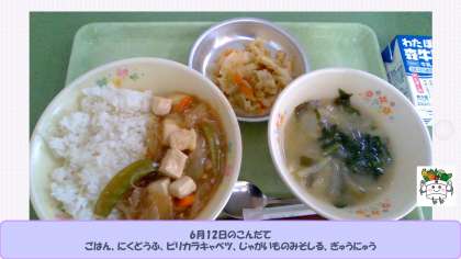 今日は、「未来はみんなで変えられる 知ろう!やってみよう!SDGs」ということで、「食品ロス」を減らすためにできること、「ひとり分をしっかり食べる」を実行しましょう!!それぞれの教室に配られている給食は、すべて食べることで皆さんに必要な栄養が満たされます。ぜひ空っぽの食缶を返してくださいね!
