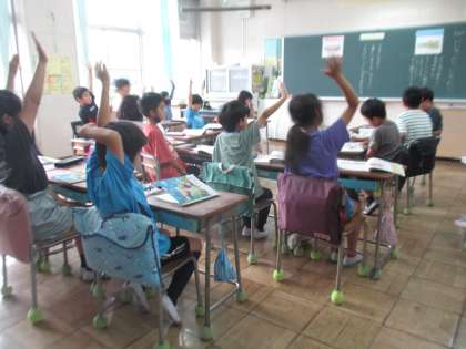 道徳の授業でした。教材「いいち、にいっ、いいち、にいっ」を読んで、友達と助け合うことについて考えました。友達に助けられたり、友達を助けたりした体験を振り返りました。
