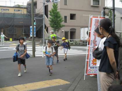 「柏木小北交差点」を使っている児童の中には、信号を守らない危険な渡り方をしている1・2年生の児童がいるという連絡が、学校に数件寄せられています。朝は柏木小北交差点では登校見守りボランティアの方がいますが、下校時は児童だけとなります。また、歩道いっぱいに広がって歩いたり、虫探しをしながら不規則な歩き方をしたりして、自転車とぶつかりそうになるケースもあります。