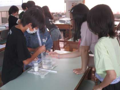 丁寧に手順を教わり、いざ実験スタート! 班ごとに担当することが違います。