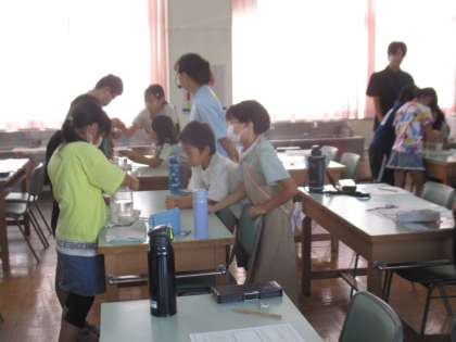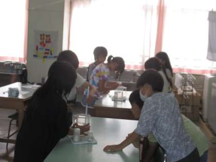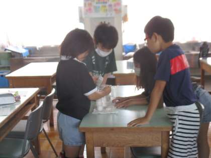 4年生 水道キャラバン 3 公開日 2024/07/08 更新日 2024/07/08 柏木小の出来事 1班が濁りのもとを3杯入れて、2班がそれを混ぜています。 どんな実験ができたのか、ぜひお家でお子さんに聞いてみてください。 いいね(0)