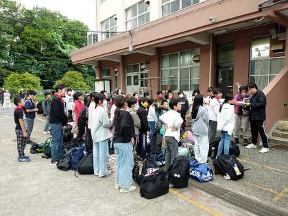 予定より早く学校に戻ることができました。帰校式の途中で、雨が降り始めてしまいました。