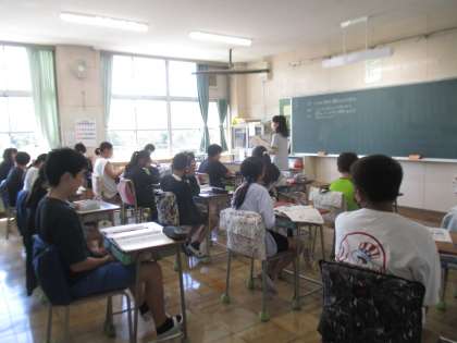 教室で家庭科の授業でした。