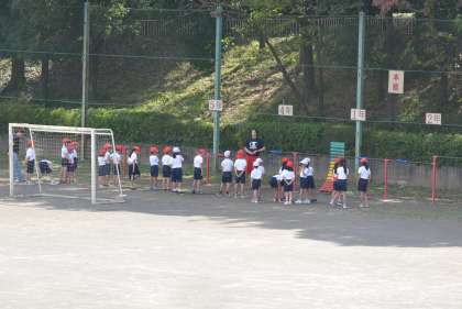 体育で鉄棒をしていました。日陰なので暑すぎず、ちょうどいいですね。
