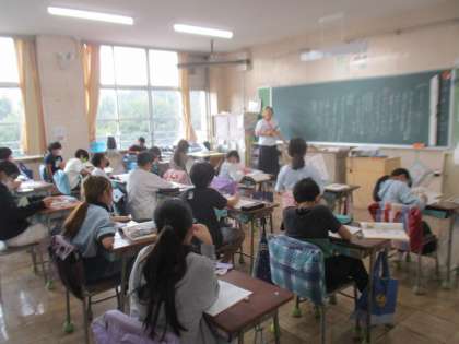 国語の授業をしていました。 先生の話をしっかり聞けています。