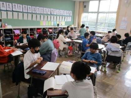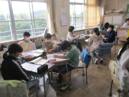 2組は家庭科です。ご飯とお味噌汁についての学習でした。