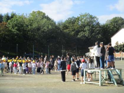 「お呼び出し」の内容にあてはまる人は、校庭を小さく1周します。