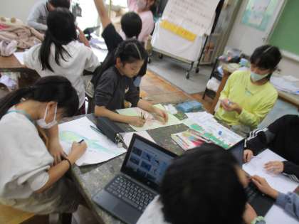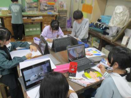 アートクラブではクロームブックで描きたいイラストや写真を探して、模写をしていました。