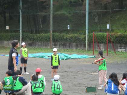 4時間目は体育です。Tボールをしていました。先生に打ち方を教わって振ります!