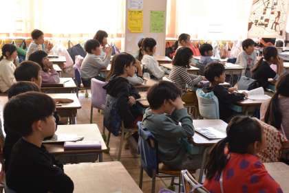 講師の先生が読み聞かせをしていました。教室はシーンと静まり、話に入り込んでいました。