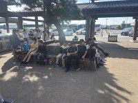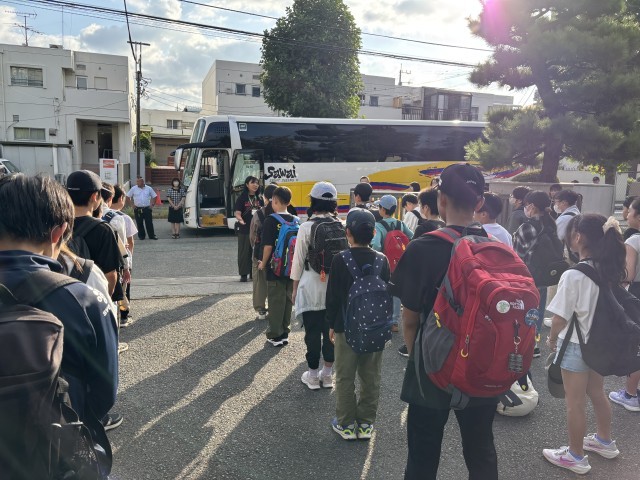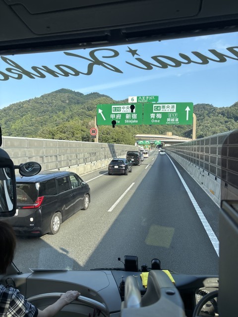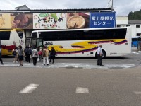 出発式を終え、予定通りバスは出発し、最初の目的地の富岡製糸場に向かいます。たくさんのお見送りありがとうございます。バス内では早速レクをして楽しんでます。