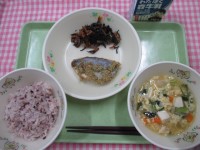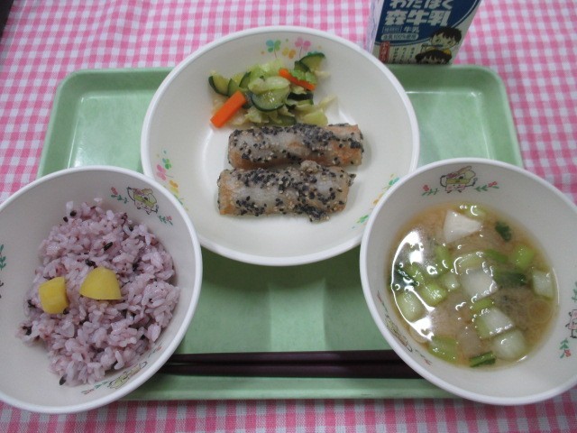 「今日は、『八王子御膳』献立ということで、栗を月に見立てたごはん、八王子城の石垣をイメージした、ちくわのごま衣揚げ、八王子産の野菜をたっぷり使った八王汁を提供しました。石垣揚げが大人気でした!」