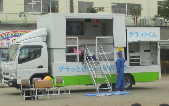 講話の後、4年生全員が起震車体験をしました。