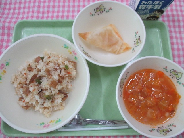 「今日は、旬のりんごを使った手作りパイでした。手作りりんごジャムをしゅうまいの皮で包んで焼きました。子どもたちも喜んで食べてくれました。