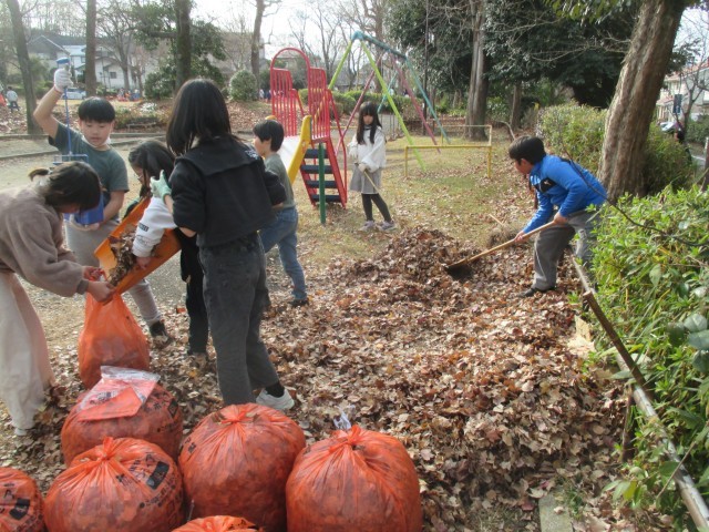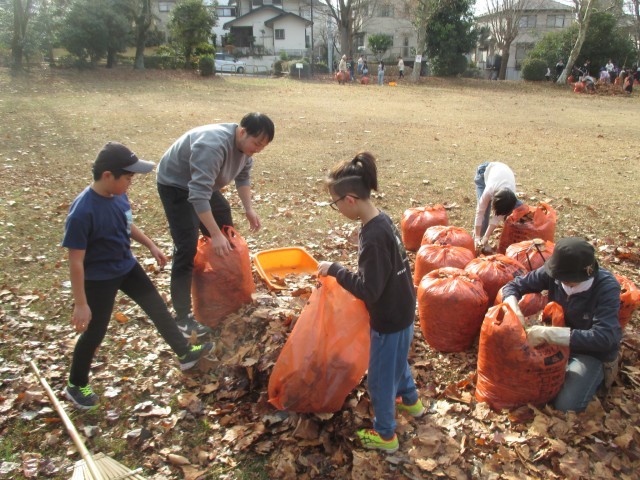 地域の方と一緒に近隣にある片倉台中央公園で落ち葉集めをしました。