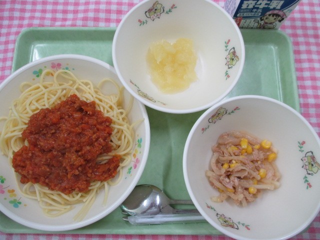~1月14日(水)の給食~ 公開日 2026/01/16 更新日 2026/01/16 給食室より ☆献立名☆・スパゲティミートソース・ツナサラダ・りんご缶・牛乳「今日は子どもたちの大好きなミートソーススパゲティでした。とてもよく食べてくれていました。」 いいね(0)