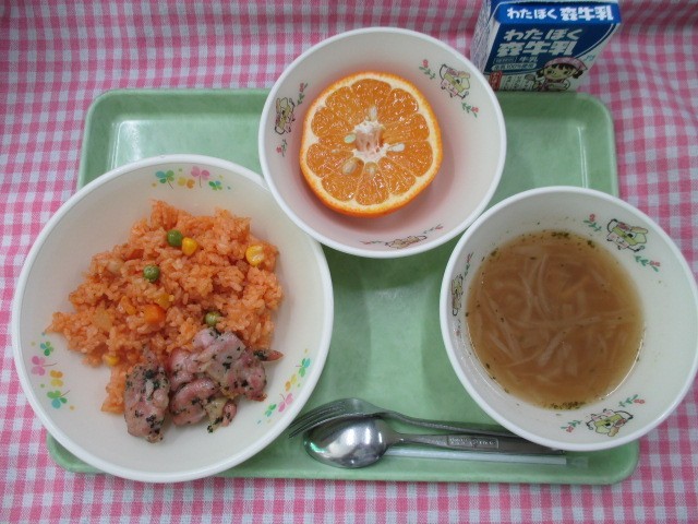 「今日から、学校給食週間のメニューがスタートしました。オニオンスープは玉ねぎをあめいろに炒めて、だしは削り節で取り、うまみたっぷりのおいしいスープになりました。子どもたちにも好評でした!」