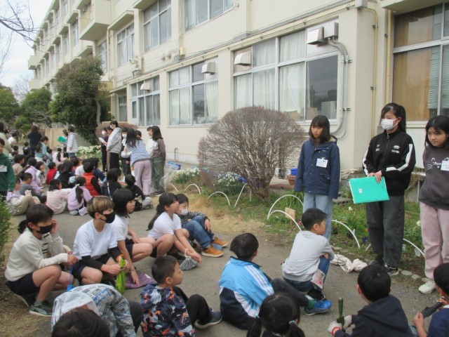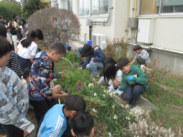 すてきな卒業式、入学式になるように、5年生がリードして花壇の整備を行いました。