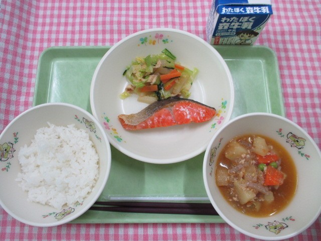 「旬の新じゃがをつかった煮物を提供しました。ピリ辛ですが、よく食べてくれていました!」