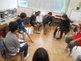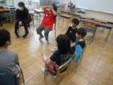 ゲームを通して、だんだんみんなの動きが上手になってきました。面白い動きも見られます。鬼役(先生)は〇〇君と言いますが、当たりません。子供たちの協力する動きが見事でした。