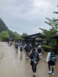 いろは坂でバス酔いすることもなく、みんな元気で日光江戸村に着きました。強く降っていた雨も上がり、これからグループ行動です。