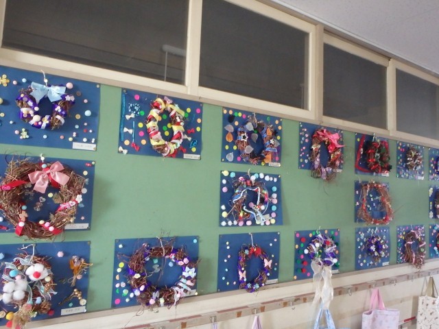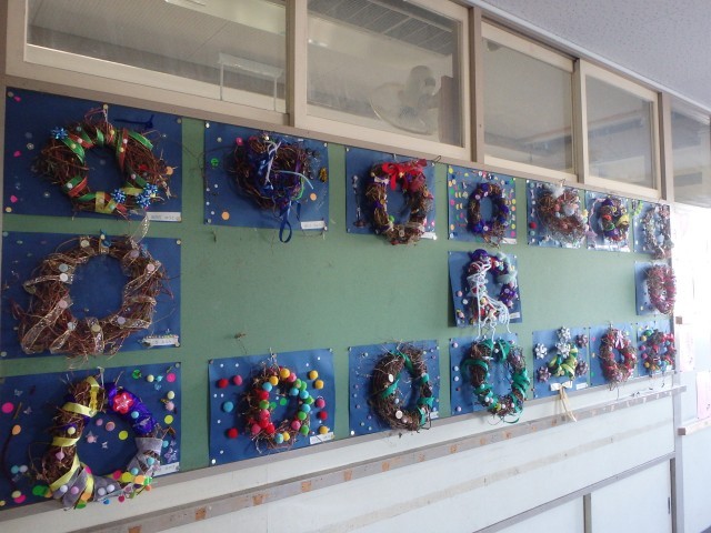 春から育ててきたあさがおの学習のまとめです。つるを使ってリースを作りました。つるを巻いてその周りに飾りをつけました。一年生の廊下が、また素敵になりました。次は、春から撮りためてきた写真をスライドにまとめていきます。